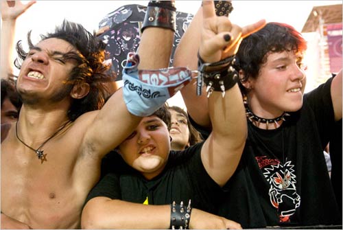 七月的伊斯坦布尔,大批年轻人在美国摇滚歌手“玛丽莲-曼森”的演唱会上。
