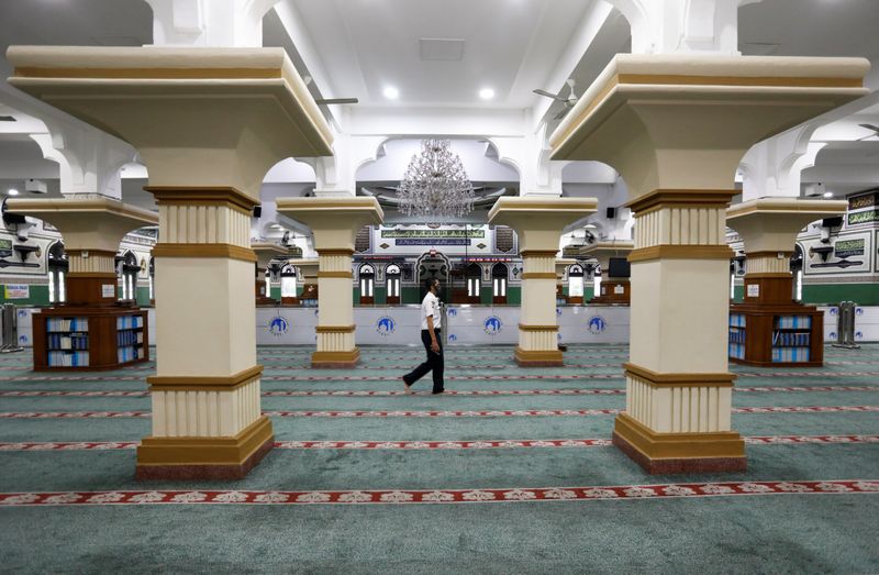 马来西亚吉隆玻,国家清真寺。疫情当头,诺大的国家清真寺只有伊玛目和两名工作人员完成塔拉维哈拜。